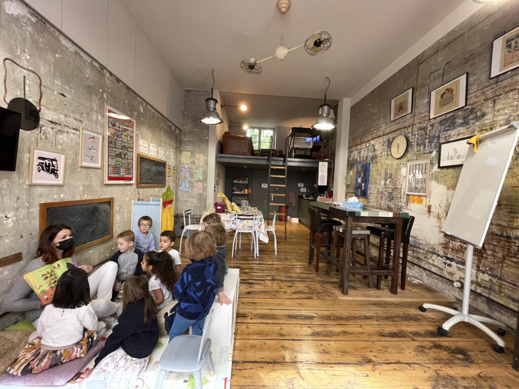 Quand les enfants franchissent la porte, ils ne se sentent pas dans une salle de classe. Ils se sentent quelque part. Les murs ont une âme. La lumière est douce. Il y a des livres partout, des couleurs, des coins pour s’installer, des jeux qui traînent et qui appellent. C’est chaleureux, c’est douillet, c’est vivant.